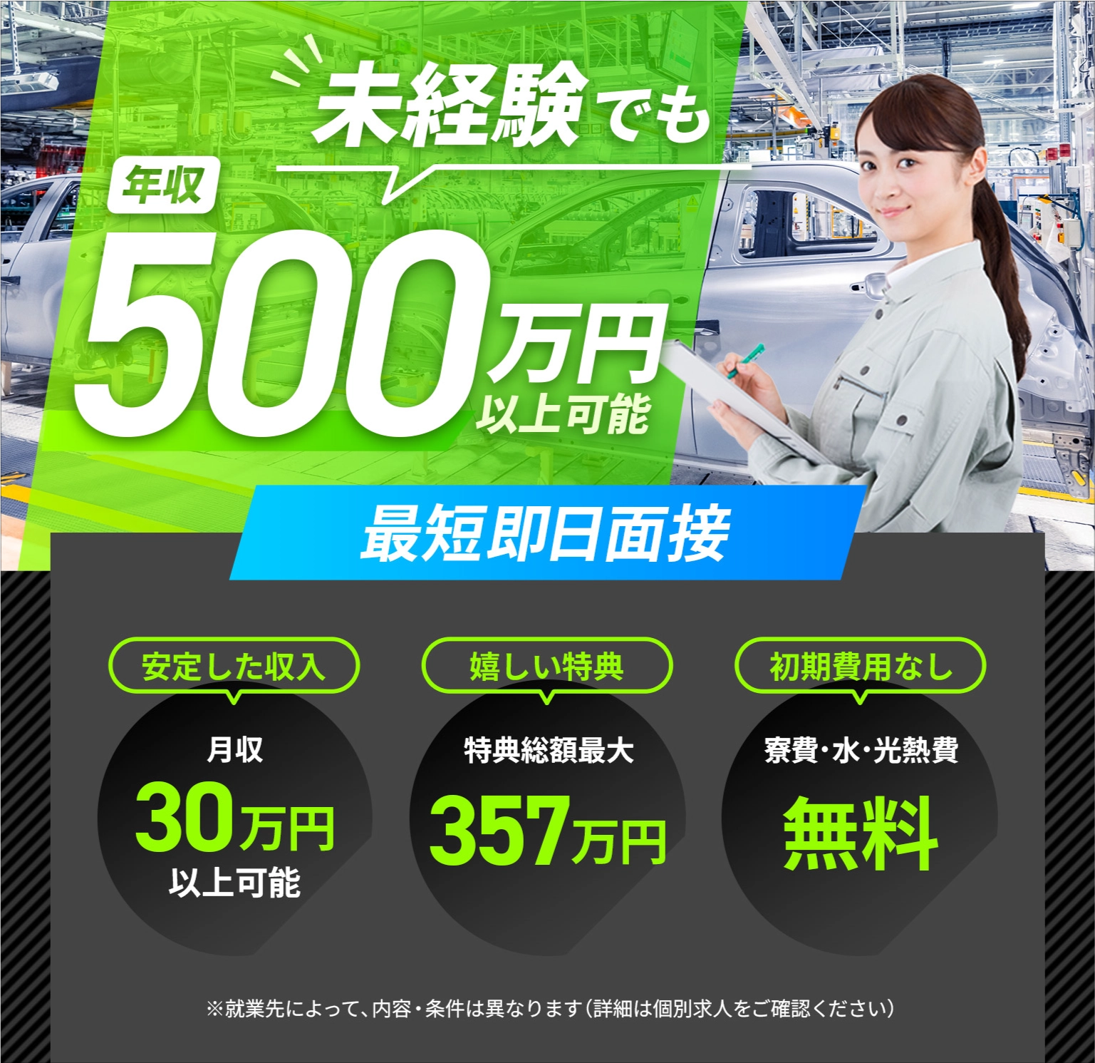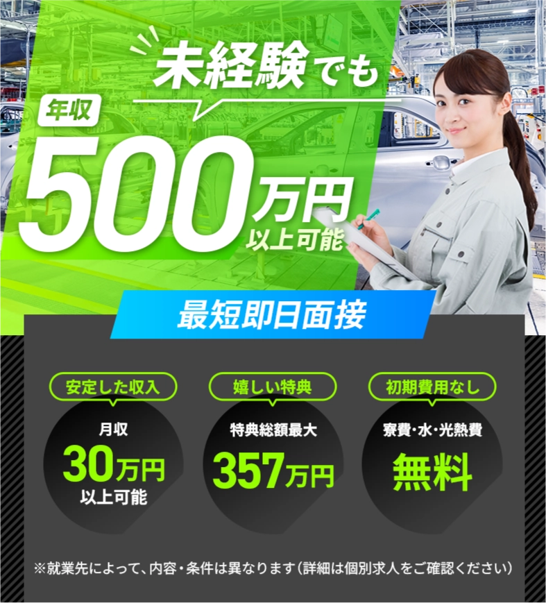 未経験OK、寮費無料、大手メーカー直接雇用!